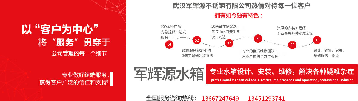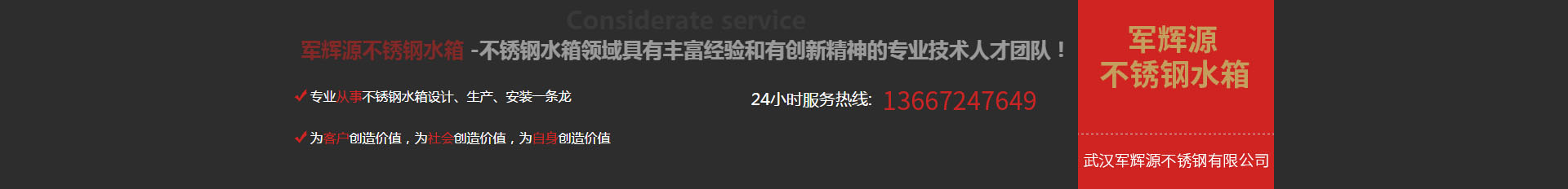 武漢軍輝源不銹鋼有限公司是華中地區(qū)專業(yè)生產(chǎn)不銹鋼水箱的環(huán)保企業(yè),公司集不銹鋼水箱開(kāi)發(fā)設(shè)計(jì)、生產(chǎn)、銷(xiāo)售、維修、售后服務(wù)為一體。